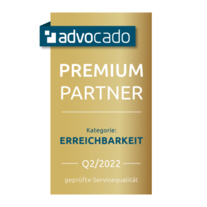 Als Teil des advocado-Qualitätsnetzwerks gehören wir zu den derzeit rund 350 ausgewählten Kanzleien, die besonders durch eine einwandfreie Beratung sowie zufriedene Mandanten überzeugen. Wir sind stolz darauf, ein Teil dieses Netzwerks zu sein! Damit stellen wir uns bereits jetzt auf die zukünftigen Erwartungen unserer Mandanten ein. advocado bietet ausgezeichnete Beratung von erfahrenen und spezialisierten Anwälten zu jedem juristischen Anliegen. Die sichere Online-Plattform ermöglicht u. a. eine einfache und flexible Kommunikation zwischen Anwalt und Mandant, die Beratung und Vertretung im Streitfall sowie eine komfortable Zahlungsabwicklung. Die regelmäßigen Kontrollen und Zertifizierungen der Partner-Anwälte zeugen von der besonderen Qualität der auserlesenen